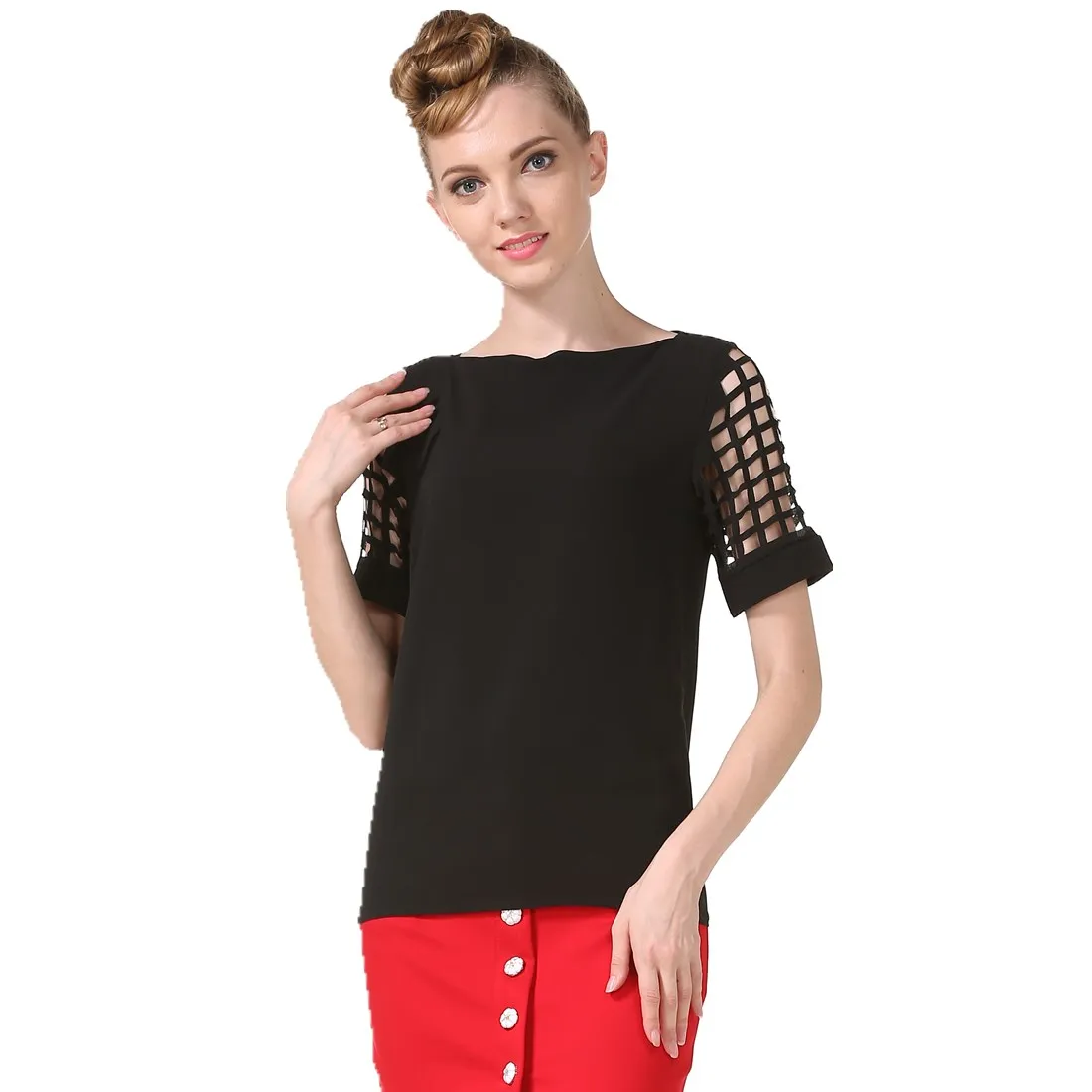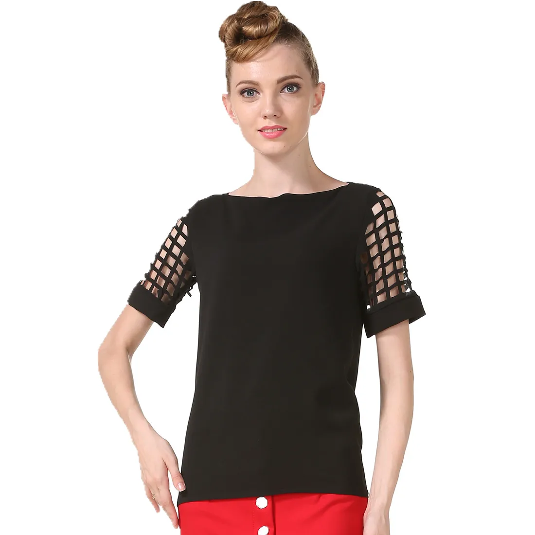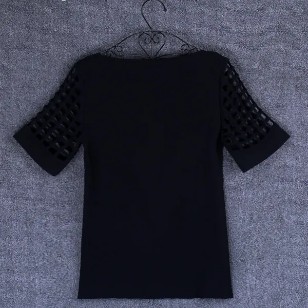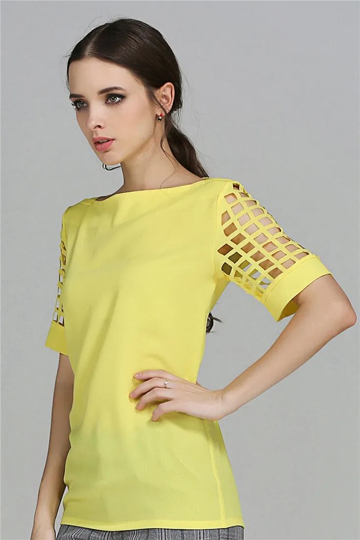 Summer Fashion Women Blouses & Shirts Hollow Out Sleeve Slash Neck Chiffon Blouse Plus Size
